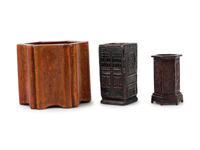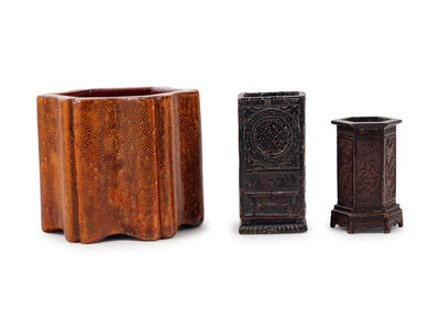 Three Chinese Lacquered Brush Pots, Bitong