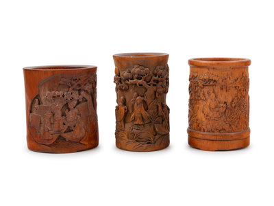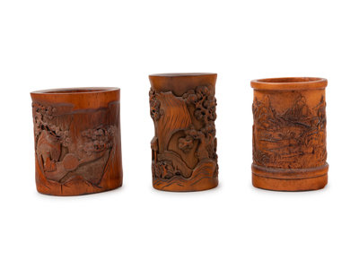 Three Chinese Bamboo Brush Pots, Bitong