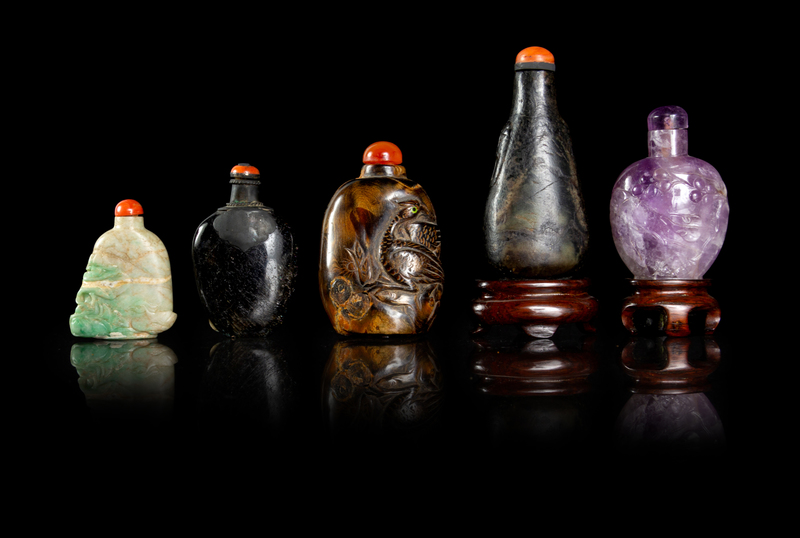 Five Chinese Hardstone Snuff Bottles