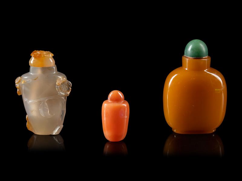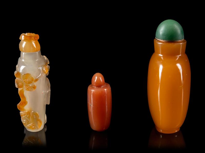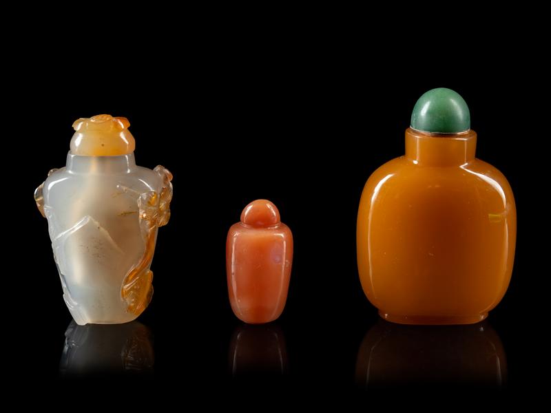 Three Chinese Agate Snuff Bottles