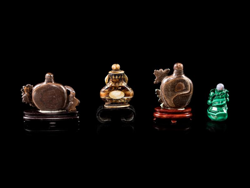 two carved in low-lief with birds and flowers, one carved as a double-gourd, and one of pear shape.