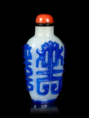 A Chinese Blue Overlay 'Snowflake' Ground Glass Snuff Bottle