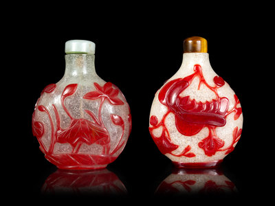 Two Chinese Red Overlay 'Snowflake' Ground Glass Snuff Bottles