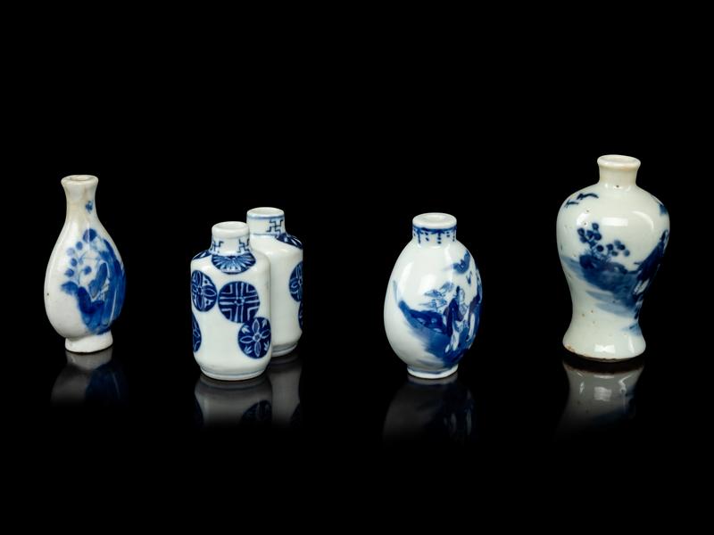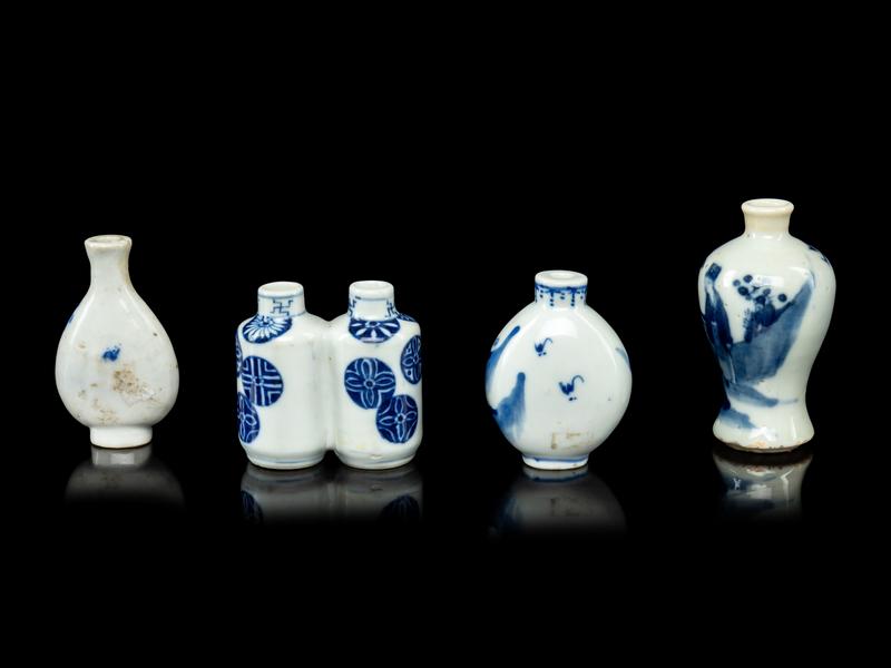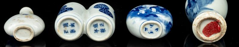 Four Chinese Blue and White Porcelain Snuff Bottles