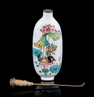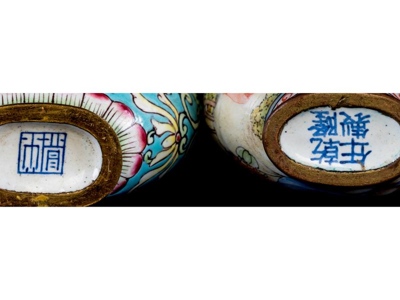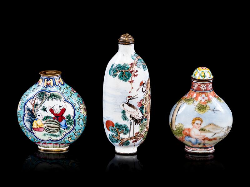 Three Chinese Canton Enamel on Copper Snuff Bottles