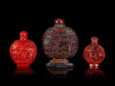 Three Chinese Cinnabar Lacquer Snuff Bottles