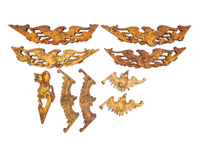 Nine Chinese Gilt Lacquered Wood Bat-Form Panels