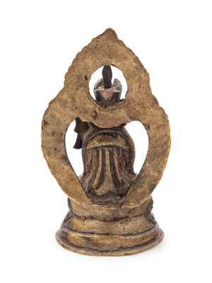 A Small Tibetan Gilt Bronze Figure of a Lama