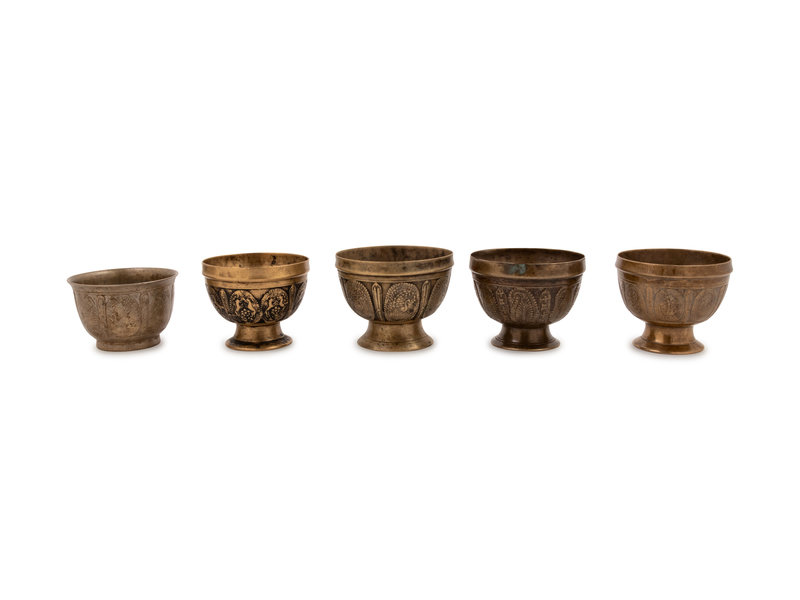 Five Nepalese Batuka Bronze Ceremonial Bowls