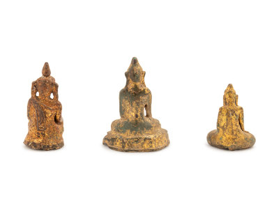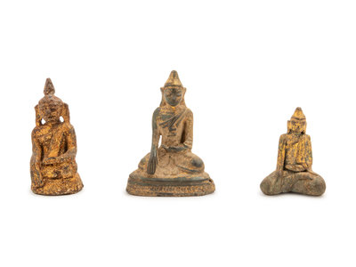 Three Thai Parcel-Gilt Bronze Figures of Buddha