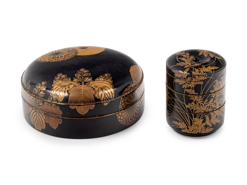 Two Japanese Gilt and Black Lacquered Boxes