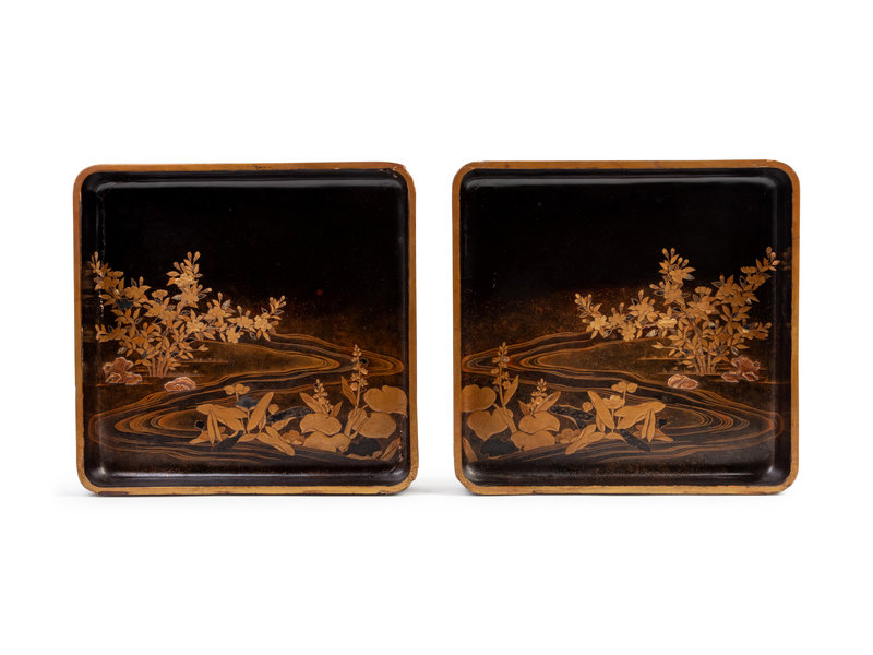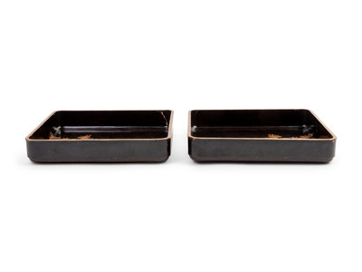 A Pair of Japanese Gilt and Black Lacquer Rectangular Trays