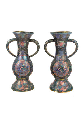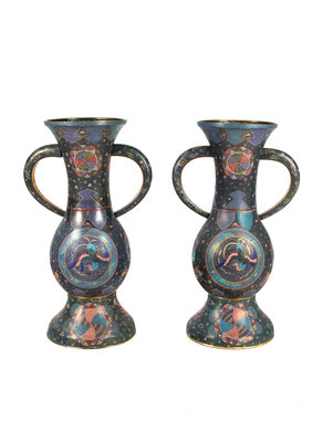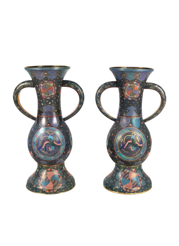 A Large Pair of Japanese Cloisonne Enamel Vases