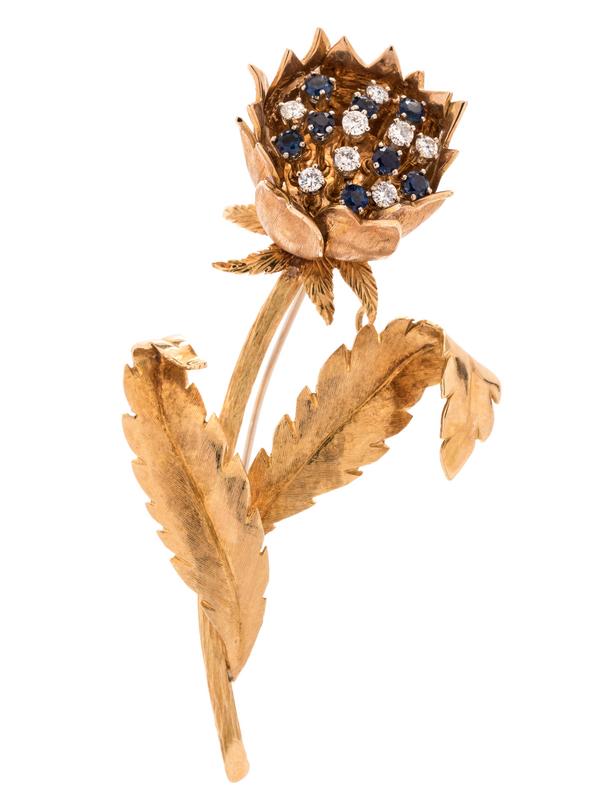 YELLOW GOLD, DIAMOND AND SAPPHIRE EN TREMBLANT FLOWER BROOCH