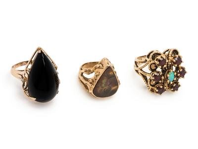 COLLECTION OF YELLOW GOLD AND GEMSTONE RINGS
