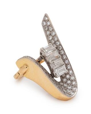 Containing 73 round brilliant cut diamonds weighing approximately 0.75 carat total and four baguette cut diamonds weighing approximately 1.25 carats total.