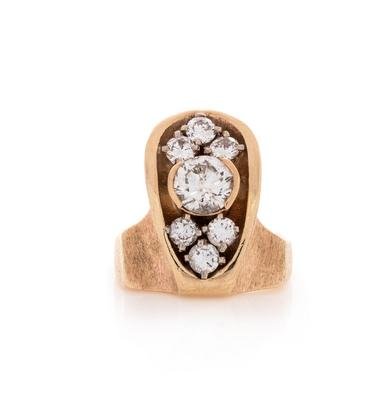 Containing one round brilliant cut diamond weighing approximately 1.10 carats and six round brilliant cut diamonds weighing approximately 0.65 carat total.