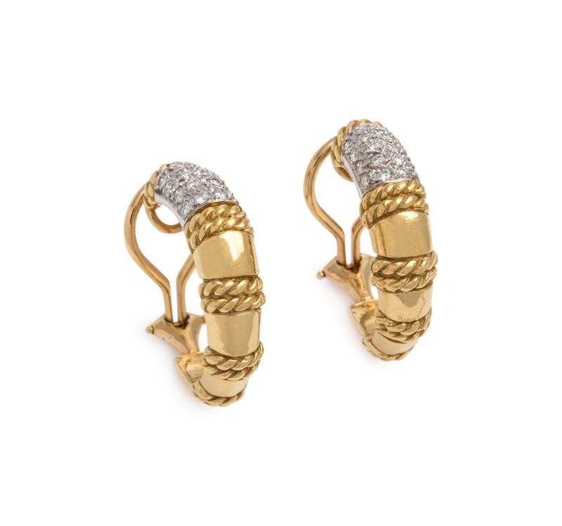 CASSIS, BICOLOR GOLD AND DIAMOND EARCLIPS