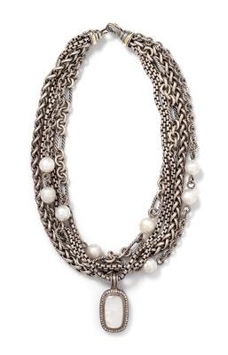 DAVID YURMAN, MOTHER-OF-PEARL, DIAMOND AND CULTURED PEARL PENDANT/NECKLACE