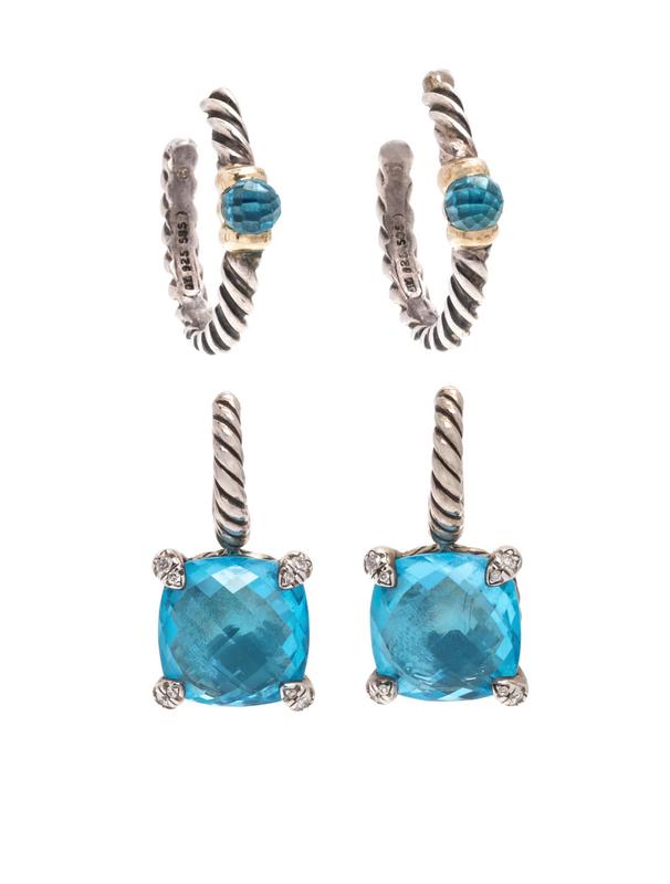 DAVID YURMAN, COLLECTION OF STERLING SILVER AND BLUE TOPAZ EARRINGS