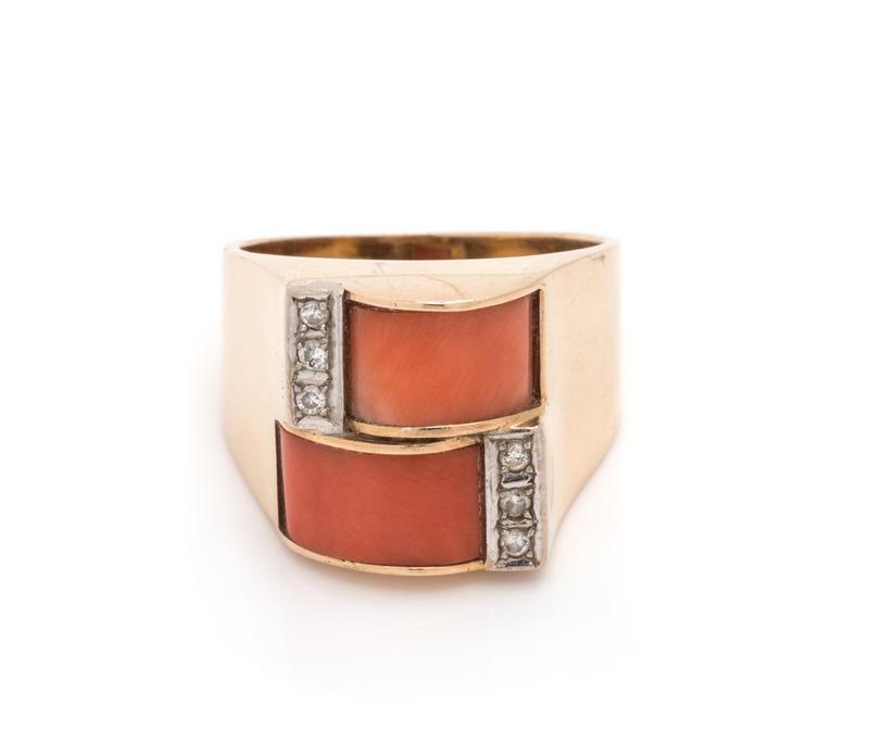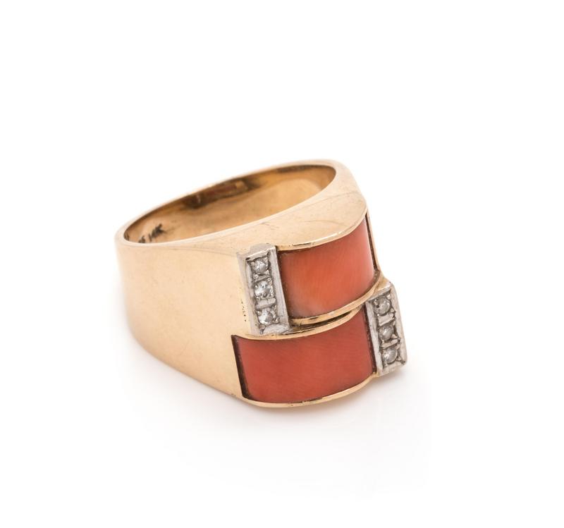 CORAL AND DIAMOND RING