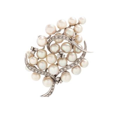 CULTURED PEARL AND DIAMOND BROOCH