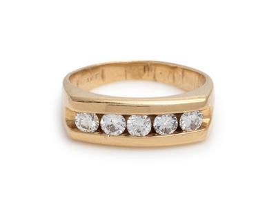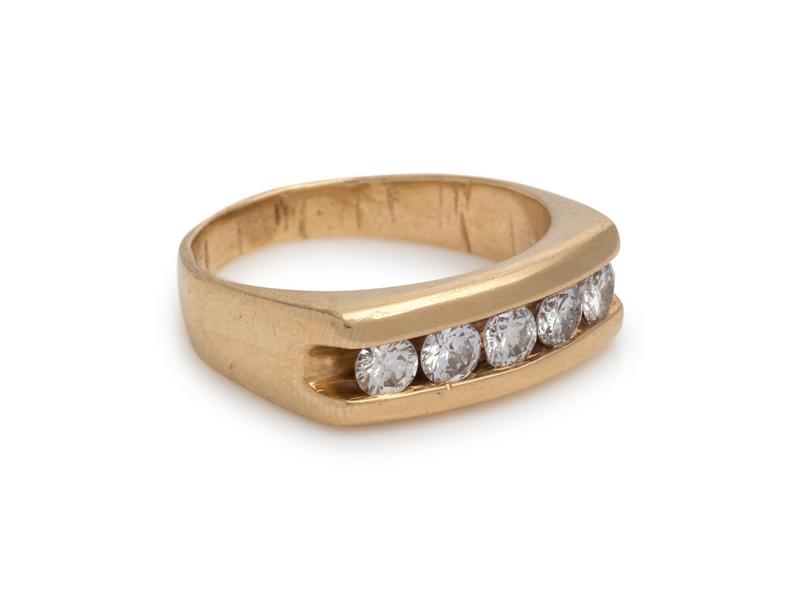 Containing five round brilliant cut diamonds weighing approximately 0.80 carat total.