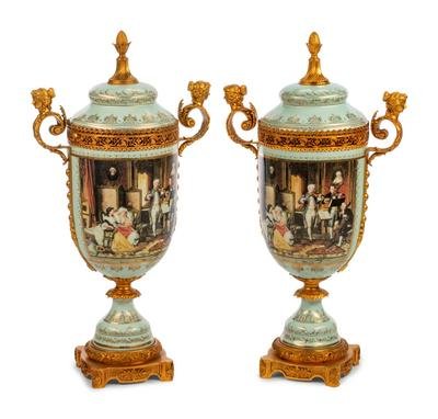 A Pair of Gilt Metal Mounted Sèvres Style Porcelain Covered Vases