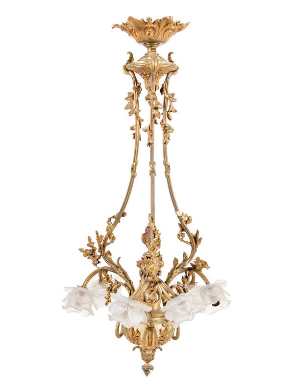 A Neoclassical Gilt Metal Six-Light Chandelier