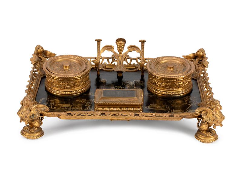 A French Gilt Bronze Mounted Chinoiserie Encrier