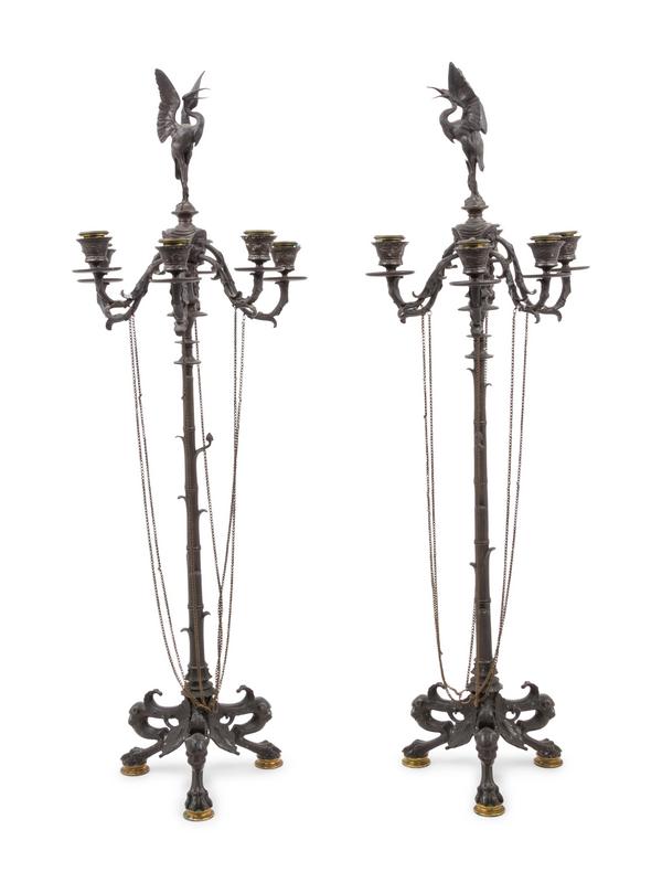 A Pair of Neoclassical Bronze Six-Light Candelabra