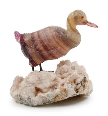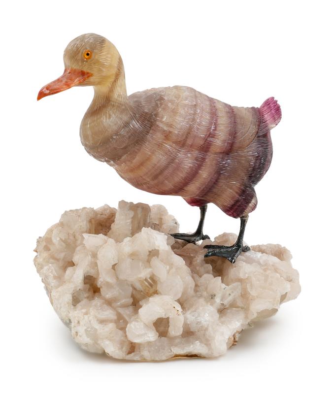A Carved Agate Figure of a Duck