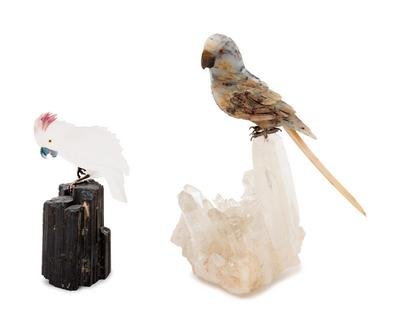 A Carved Rock Crystal Figure of a Cockatoo and a Carved Agate Figure of a Parrot