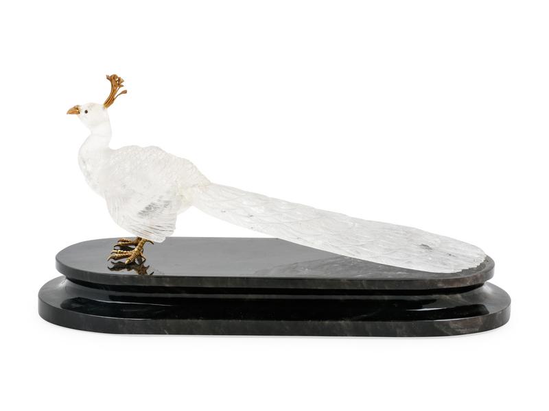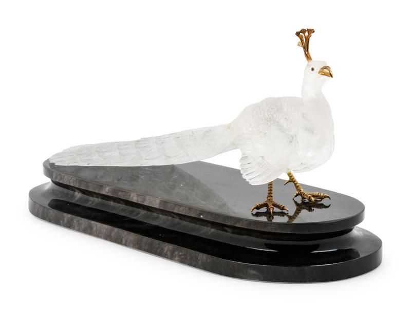 A Carved Rock Crystal Figure of a Peacock