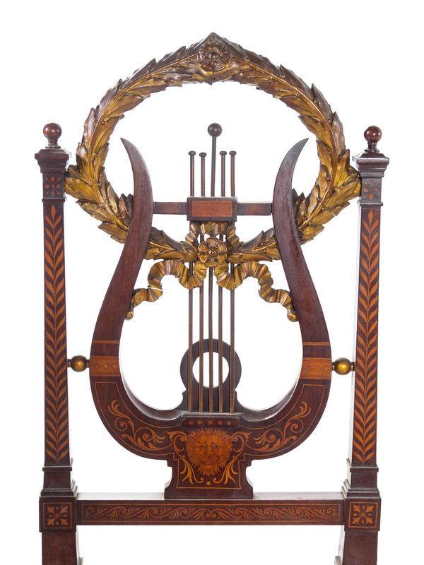 A Continental Parcel Gilt and Marquetry Lyre-Back Side Chair