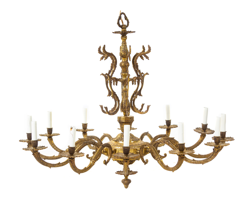 A Continental Brass Twelve-Light Chandelier