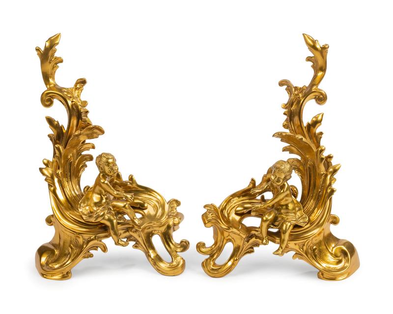 A Pair of Louis XV Style Gilt Metal Figural Chenets