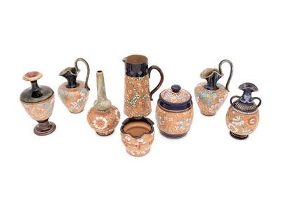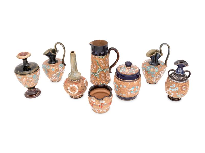 Eight Doulton Lambeth Stoneware Articles