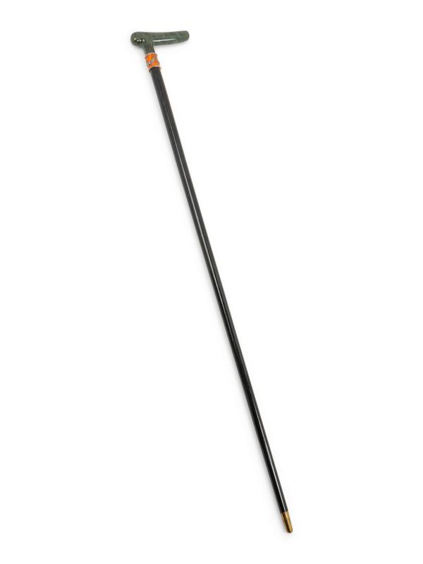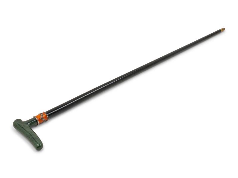 An Enamel and Nephrite-Handled Ebonized Walking Stick
