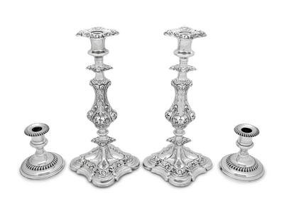 Two Pairs of English Silver-Plate Candlesticks