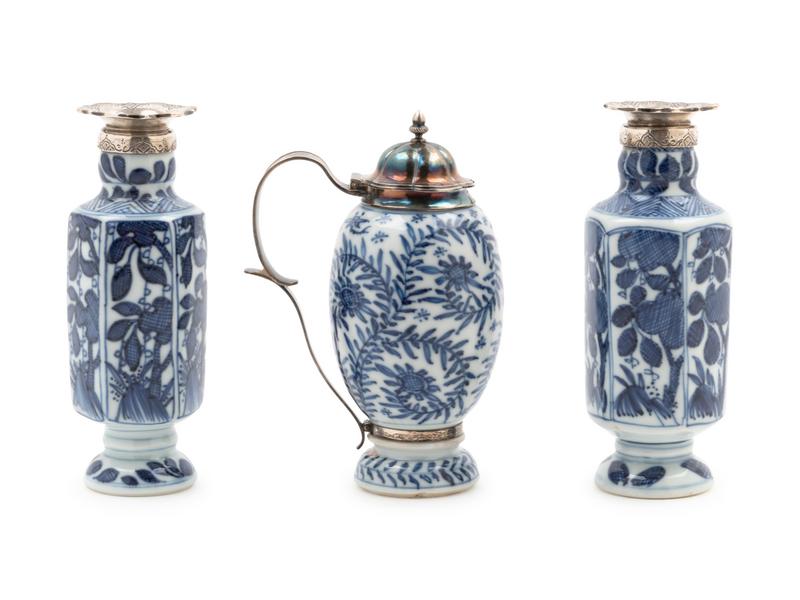 Three Chinese Export Blue and White Porcelain Articles