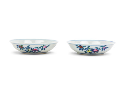 A Small Pair of Chinese Doucai Porcelain Dishes
