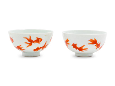 A Pair of Iron Red Decorated 'Goldfish' Porcelain Bowls