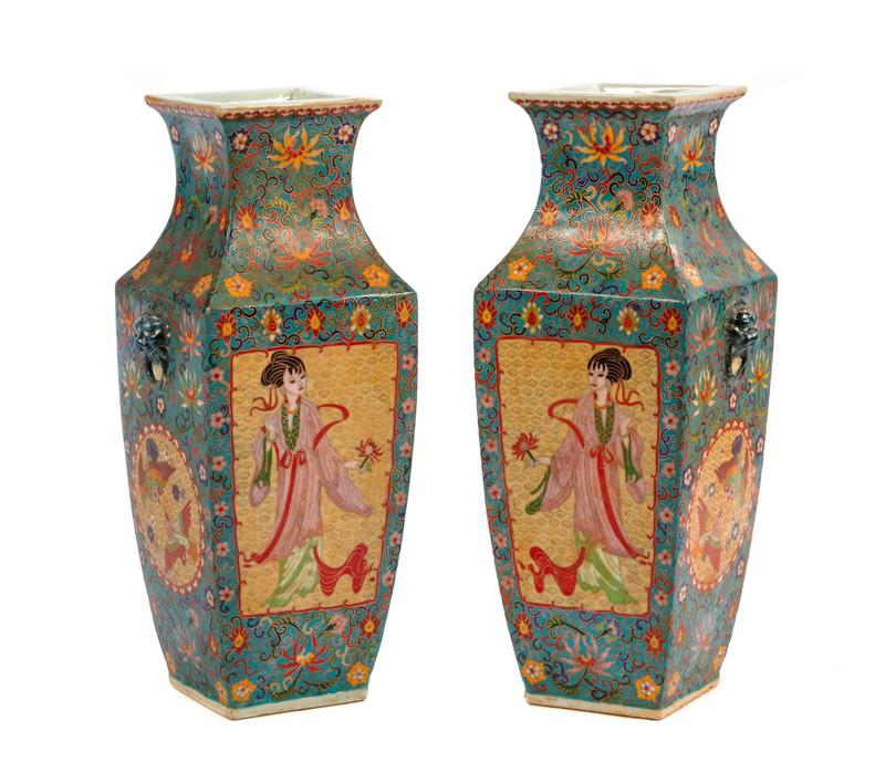 A Pair of Chinese Export Cloisonné on Porcelain Vases