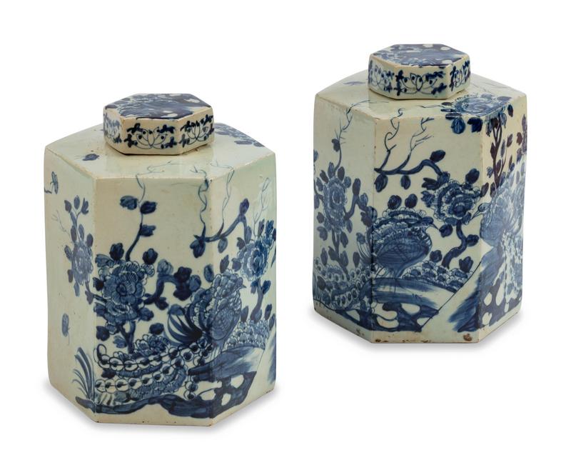 A Pair of Chinese Hexagonal Porcelain Tea Caddies