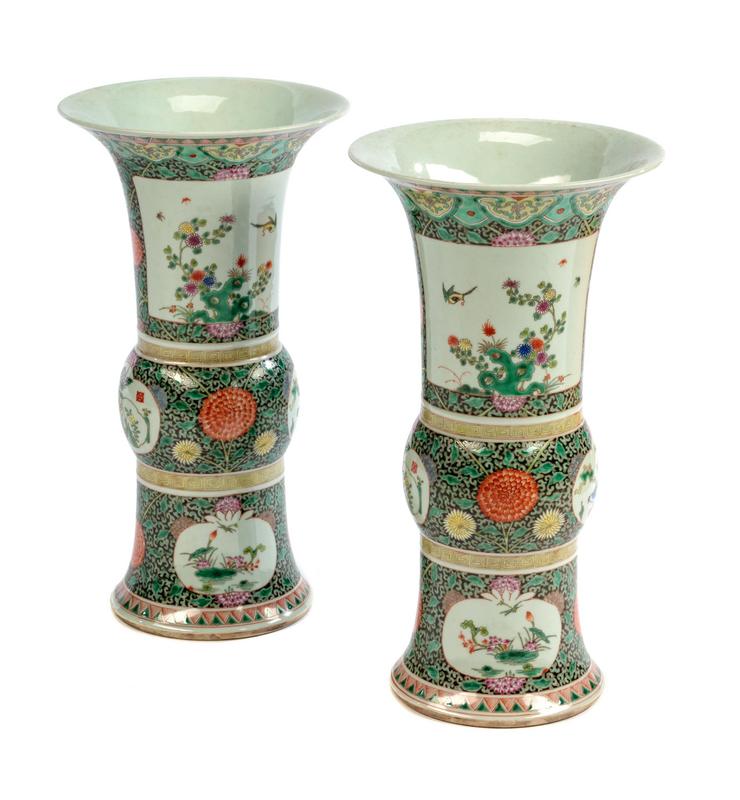 A Pair of Chinese Famille Verte Porcelain Vases
