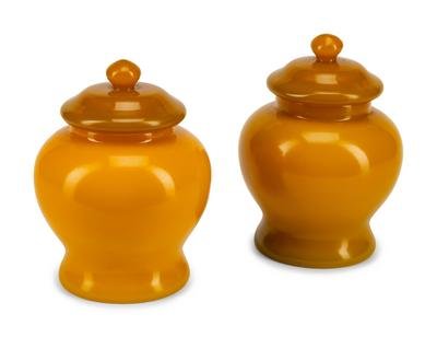 A Pair of Chinese Export Yellow Peking Glass Covered Jars