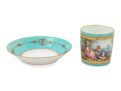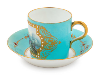 A Sèvres Style "Jeweled" Porcelain Cup and Saucer