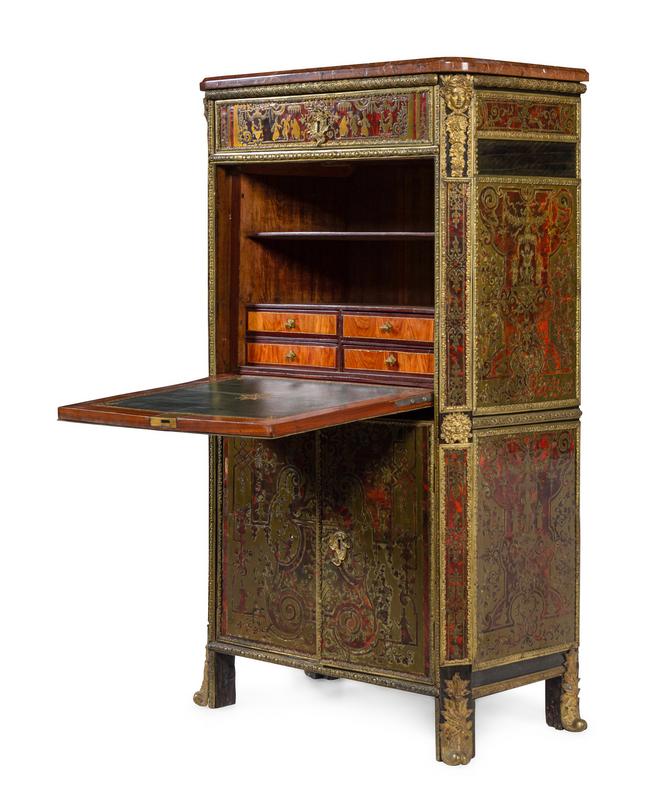 A Louis XIV Style Boulle Marquetry Marble-Top Secrétaire à Abattant