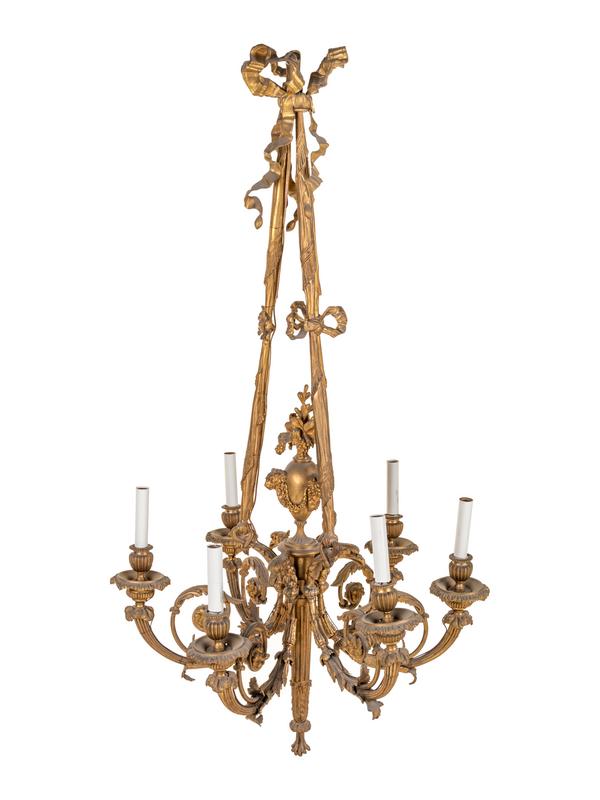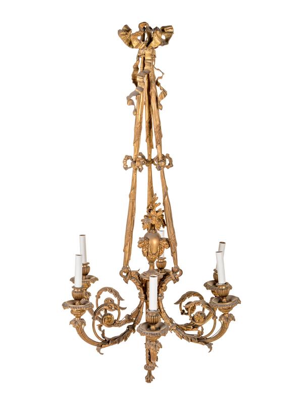 A Neoclassical Gilt Bronze Six-Light Chandelier